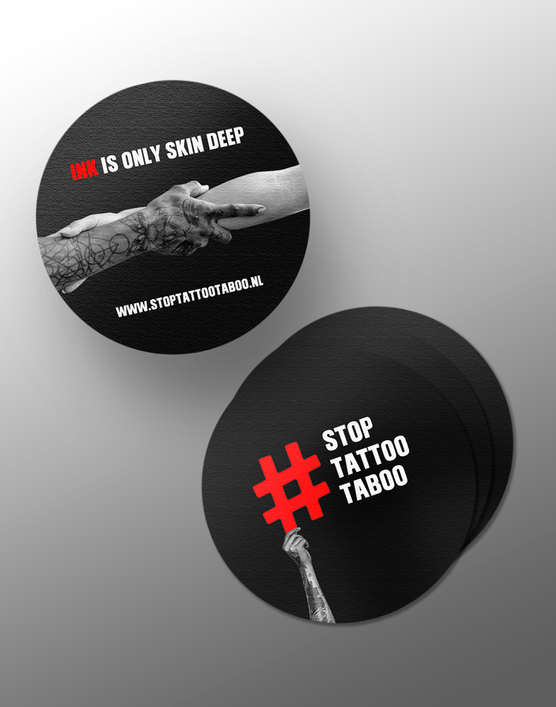 For this protest identity I started a protest called STOPTATTOOTABOO. This protest is to stop people from judging people with tattoo’s and stop the dis- crimination. A lot of people think that there isnt any discrimination towards tattoos but the contrary has been proven. For my research I made an insta- gram to get awareness. I asked in an instagram poll for stories of other peo- ple about discrimination and tattoos. Alot of people replied! I wanted to use their stories for my design. With the hashtag #stoptattootaboo created a community.