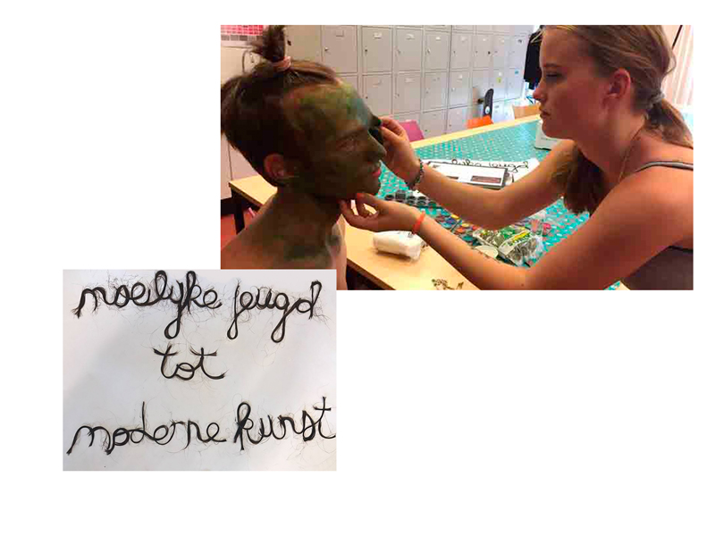 I designed two spreads about Levi van Veluw. He’s a dutch artist that makes mainly portrets and instalations. I made 2 spreads and a cover for a magazine called Items. The cover is inspired by his work. The heading from the spread is made with actual hair. This was also inspired by Levi’s work.