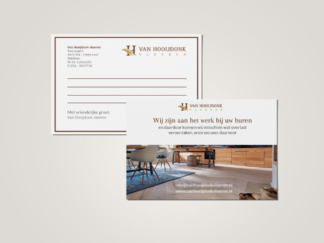 For two floor specialists (fitter) company’s I had to make a card to put trough the neighbors door to warn them that there might be some noise disturbance.