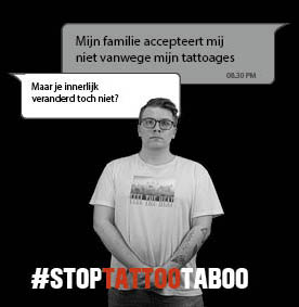For this protest identity I started a protest called STOPTATTOOTABOO. This protest is to stop people from judging people with tattoo’s and stop the dis- crimination. A lot of people think that there isnt any discrimination towards tattoos but the contrary has been proven. For my research I made an insta- gram to get awareness. I asked in an instagram poll for stories of other peo- ple about discrimination and tattoos. Alot of people replied! I wanted to use their stories for my design. With the hashtag #stoptattootaboo created a community.